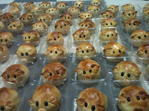 | À côté des banh nuong et banh deo aux formes «conventionnelles», Bao Anh en modèle aussi d’autres en forme de cochons pour son fils et ses copains. |