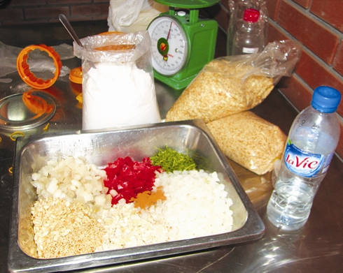 Après avoir enfilé des gants en plastique, Bao Anh commence à mélanger le tout. «Les ingrédients comme farine de blé, farine de riz gluant, sucre, courgette confite, sésame, amande, haricot vert... sont vendus dans plusieurs rues dont Hàng Diêu, Hàng Than, Hàng Buôm, au marché Dông Xuân ou dans les supermarchés. Il y a aussi des magasins où l’on vend des garnitures toutes prêtes mais je n’ose pas en acheter car je ne suis pas sûre de la qualité».