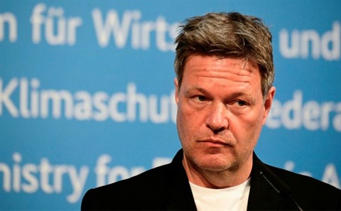 | Le ministre de l'Économie allemand, Robert Habeck lors d'une conférence de presse le 28 mars. |