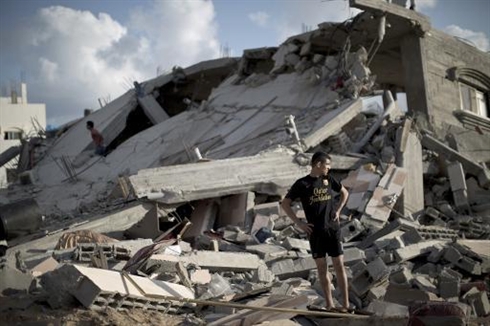 | Un Palestinien dans les décombres d'un immeuble à Beit Lahya, dans le Nord de la bande de Gaza, le 15 juillet. Photo : AFP/VNA/CVN |