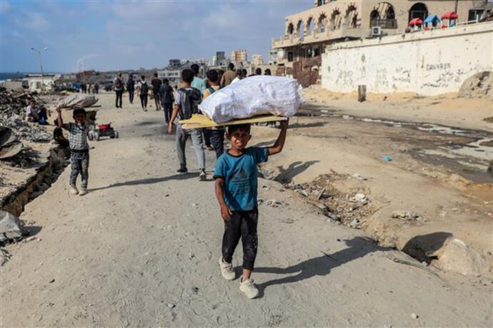 | Des Palestiniens dans un camp de réfugiés à Gaza. |