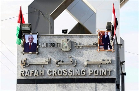 Au terminal de Rafah à la frontière égyptienne, des drapeaux palestiniens et égyptiens flottaient, avec de grandes photos du président de l'Autorité palestinienne Mahmoud Abbas et du dirigeant égyptien Abdel Fattah al-Sissi.