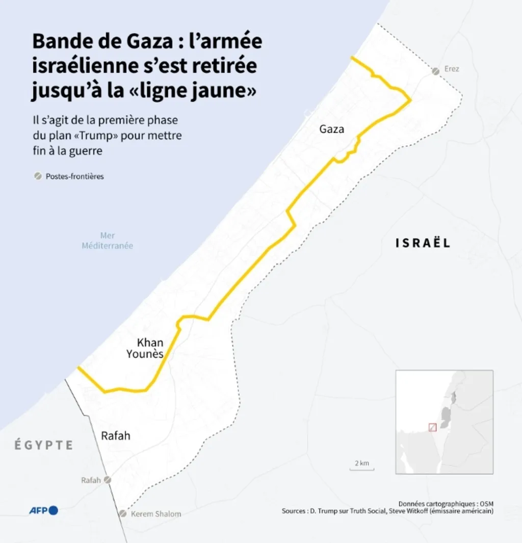 "Vous rentrez à la maison", a déclaré sur place l'émissaire américain Steve Witkoff qui s'était rendu plus tôt en journée à Gaza avec le gendre de Donald Trump, Jared Kushner et le chef de l'armée israélienne Eyal Zamir.
