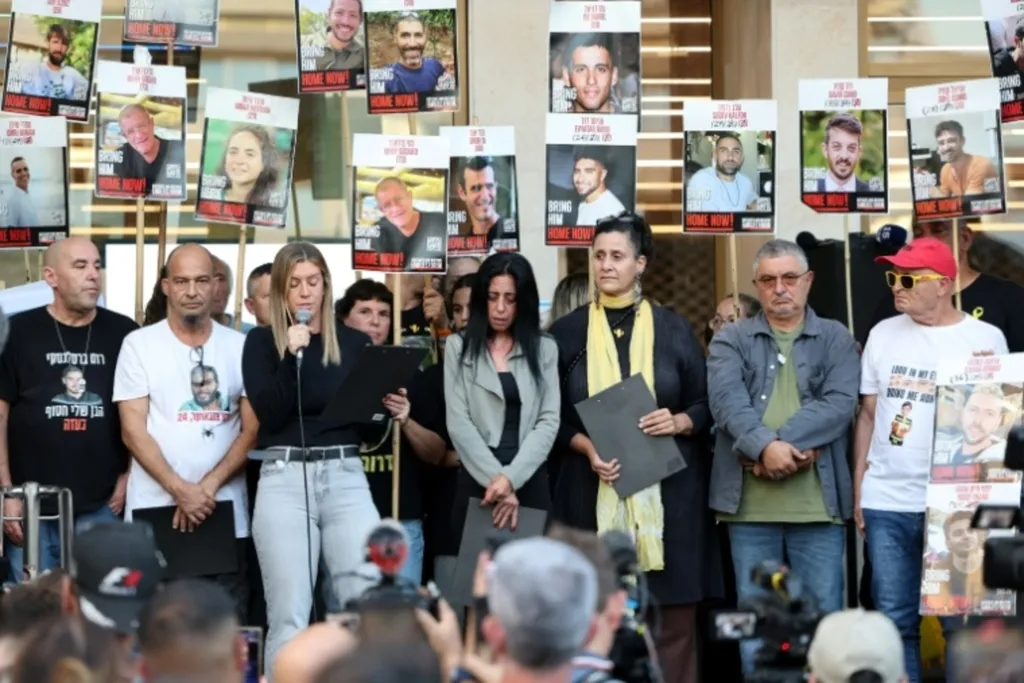 | Rassemblement de proches des otages du Hamas, le 11 octobre 2025 à Tel-Aviv. |