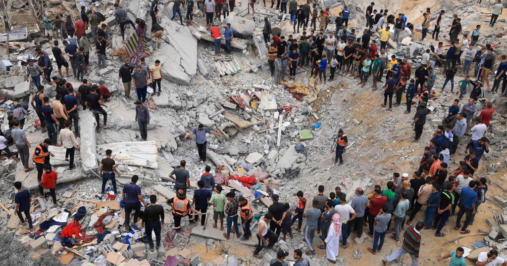 | Civils et secouristes cherchent des survivants parmi les décombres après une frappe israélienne à Khan Yunis dans le Sud de la bande de Gaza, le 12 novembre. |