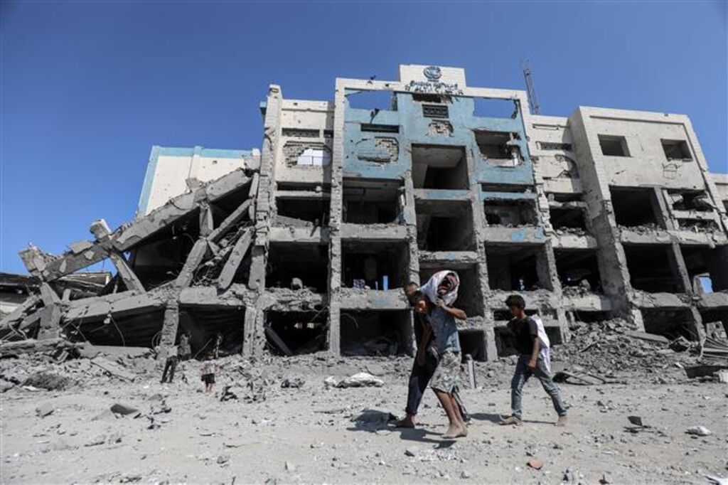| Un bâtiment détruit après une frappe aérienne israélienne dans le quartier de Sheikh Radwan à Gaza. |