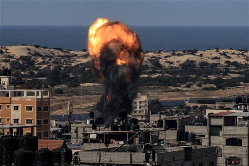 | De la fumée s'élève d'un bâtiment après une frappe aérienne israélienne à Rafah, dans le sud de la bande de Gaza, le 9 décembre. |