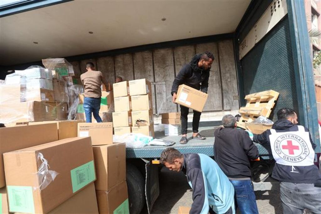| Déchargement des produits de secours humanitaire à Khan Yunis, dans le sud de la bande de Gaza, le 9 décembre. |