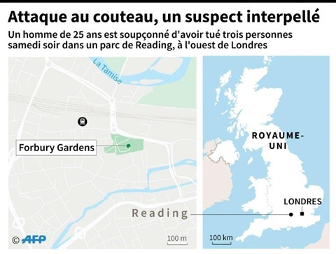 Un suspect, âgé de 25 ans et habitant de cette ville de 200.000 habitants située à environ 60 kilomètres de la capitale britannique, a été interpellé "cinq minutes" après le premier appel aux forces de l'ordre, selon la police de la vallée de la Tamise. Il était toujours en garde à vue dimanche. Si la police n'a pas livré son identité, les médias britanniques affirment qu'il s'agit de Khairi Saadallah.