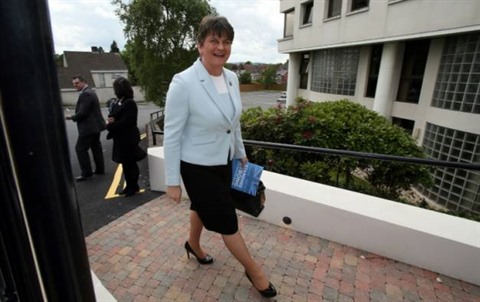 | La cheffe du DUP, le sulfureux parti unioniste protestant Arlene Foster, le 9 juin à Belfast. |