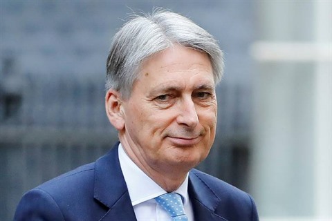 | Le chancelier de l'Echiquier britannique, Philip Hammond arrive à Downing Street le 24 octobre à Londres. |