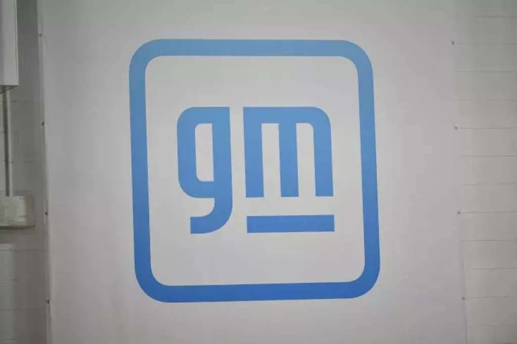 | Le logo du constructeur automobile américain General Motors, sur le mur d'une de ses usines à Détroit (Michigan), le 17 novembre 2021. |