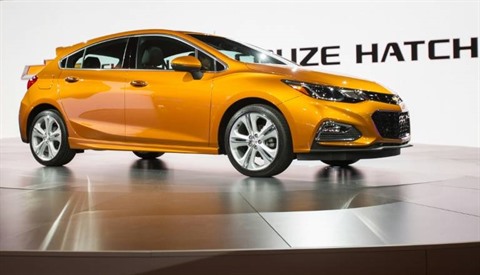 | Photo prise le 11 janvier 2016 du modèle Chevrolet Cruze 2017 lors d'une conférence de presse au salon automobile de Detroit (Michigan). |