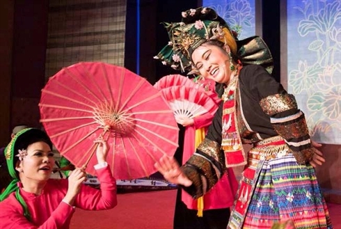 | Les chanteuses de l’ethnie Tày s’accompagnent gracieusement au luth đān tính. Photo : Interarts/CVN |