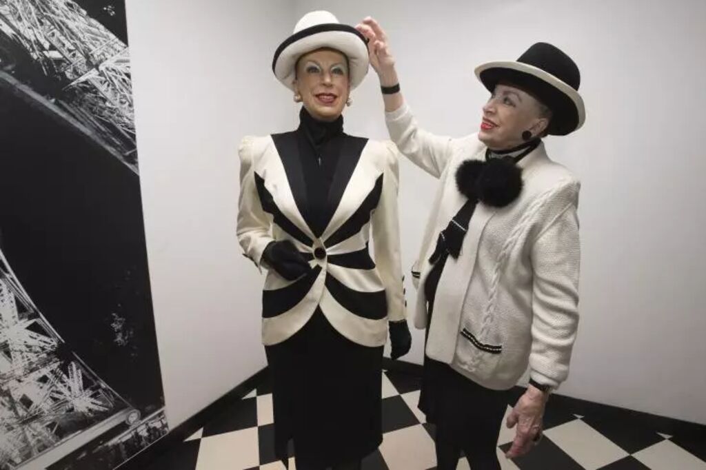 | Geneviève de Fontenay et son double de cire au musée Grévin, le 19 février 2016 à Paris. |