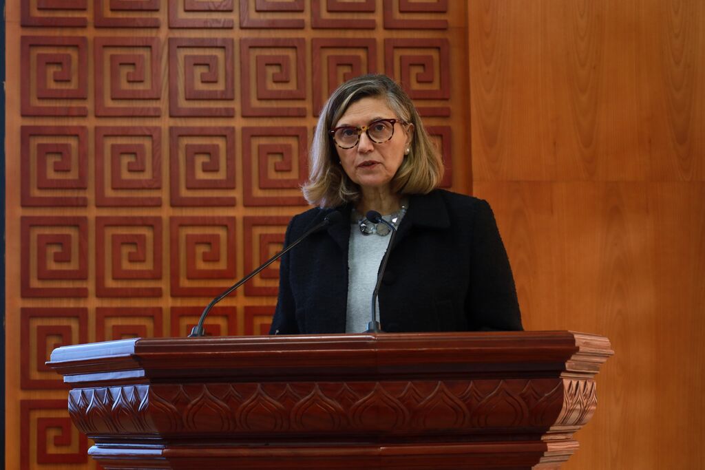 | Mme Francesca Bellone, cheffe de la coopération et du développement à l’ambassade du Canada, prend la parole lors de la cérémonie de lancement du projet. |