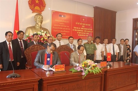 | Les autorités de Gia Lai et de Champassak signent un mémorandum de coopération. |