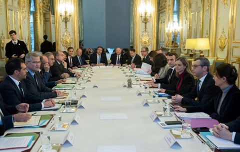 Réunion de travail à l'Élysée avec des acteurs économiques, le 18 décembre. Photo: AFP/VNA/CVN |