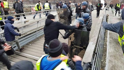 | Un ancien boxeur professionnel s'en prend à des gendarmes mobiles sur la passerelle Senghor à Paris, le 5 janvier. |