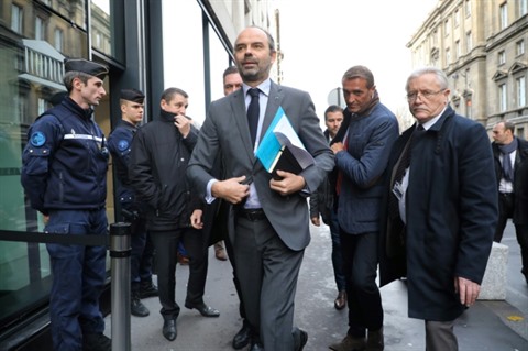 | Édouard Philippe à son arrivée à l'Assemblée nationale à Paris avant la réunion du groupe LREM et Modem le 4 décembre. |