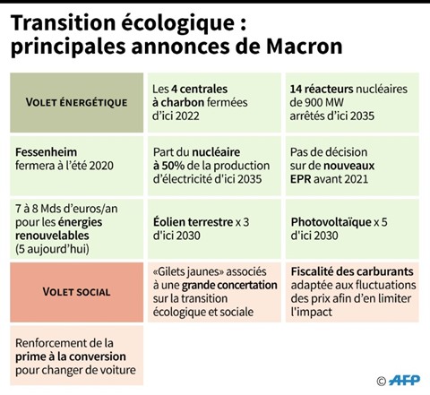 "Fin du monde" ou "fin du mois", "nous allons traiter les deux et nous devons traiter les deux", a assuré M. Macron lors d'un discours à l'Élysée pour la présentation de la programmation pluriannuelle de l'énergie, en référence à la nécessité de concilier les enjeux climatiques et sociaux, pointée par l'ex-ministre de la Transition écologique Nicolas Hulot.