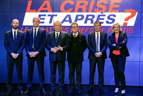 À deux mois des élections européennes, François Bayrou (MoDem), Olivier Faure (PS), Stanislas Guerini (LREM), Marine Le Pen (RN), Jean-Luc Mélenchon (LFI) et Laurent Wauquiez pour Les Républicains (LR) ont débattu pendant environ deux heures et demie sur BFMTV sur les moyens de sortir de la crise des "gilets jaunes".