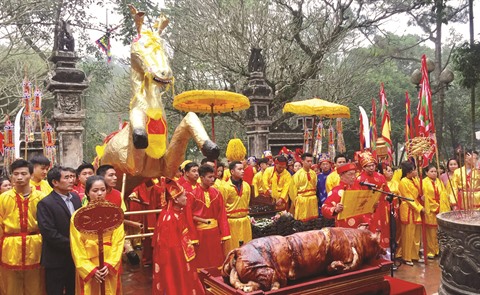| Pour honorer le Saint Gióng, une fête dédiée à lui est organisée chaque année du 6e au 9e jours du 4e mois lunaire à Soc Son, en banlieue de Hanoï. |