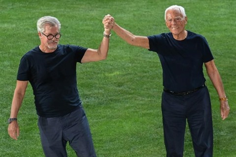 Aux antipodes de la mode-spectacle que le styliste a toujours refusée, les mannequins ont défilé dans un cadre verdoyant et intimiste, au sein de son siège historique de la via Borgonuovo, tout près du quartier de la mode. Souriant, teint toujours hâlé, cheveux blancs et yeux bleus, le vétéran de la mode italienne, au bras de son collaborateur de longue date Leonardo dell'Orco, a été vivement applaudi à l'issue du défilé.