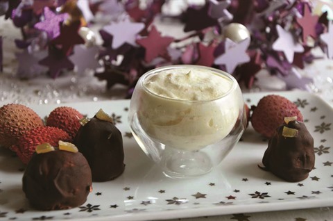 - Pour servir, faites des boules dans des flûtes à champagne ou des coupes à dessert et garnissez de feuilles de menthe, des litchis restants et en variante, ajoutez d’autres fruits frais et pourquoi pas des petits gâteaux secs.
