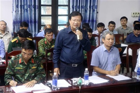 | Le vice-Premier ministre Trinh Dinh Dung s'exprime lors d'une réunion à Thua Thiên-Huê (Centre), le 13 octobre. |