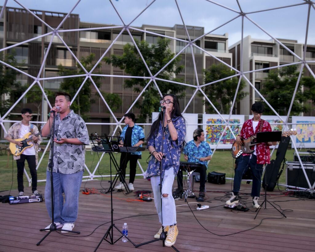 Global Fountain au sein de Global City est un complexe de divertissements variés tels que du cerf-volant au coucher du soleil, des spectacles de musique gratuits dans le plus grand aquarium d'Asie du Sud-Est à proposer des spectacles musicaux, une espace d'expositions artistiques, des cours de skateboard et de nombreuses autres activités passionnantes.