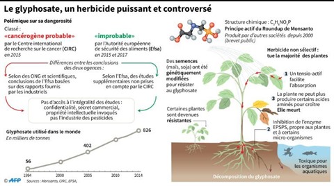 | Données sur le glyphosate, herbicide dont la dangerosité fait débat. |