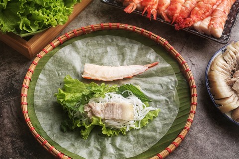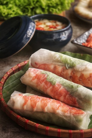 De la salade, des crevettes, de la viande de porc, du bun (vermicelle de riz), des banh da nem (galette de riz) sont tout ce dont nous avons besoin pour confectionner le goi cuôn. Ces ingrédients sont disponibles dans les marchés ou supermarchés. Malgré sa simplicité, le rouleau de printemps séduit par sa fraîcheur et sa saveur délicieuse. Il est accompagné du fameux nuoc mam (sauce de saumure) aigre-douce parsemé d’ail et de piment frais ou encore de sauce au beurre d’arachide.