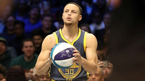 | Stephen Curry des Golden State Warriors lors du match des All-Stars NBA, à Charlotte, le 16 février 2019. |