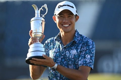 | L'Américain Collin Morikawa vainqueur du British Open, à Sandwich, le 18 août. |