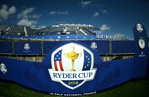 | Logo de l'édition 2018 de la Ryder Cup, qui oppose tous les deux ans les États-Unis et l'Europe. Le 19 septembre 2018 au Golf national de Guyancourt. |