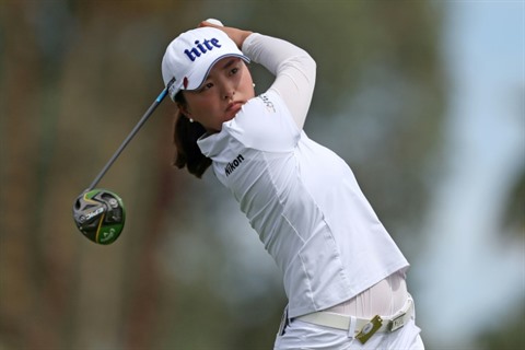 | La Sud-Coréenne Ko Jin-young lors du 3e tour du ANA Inspiration, à Rancho Mirage en Californie, le 6 avril. |