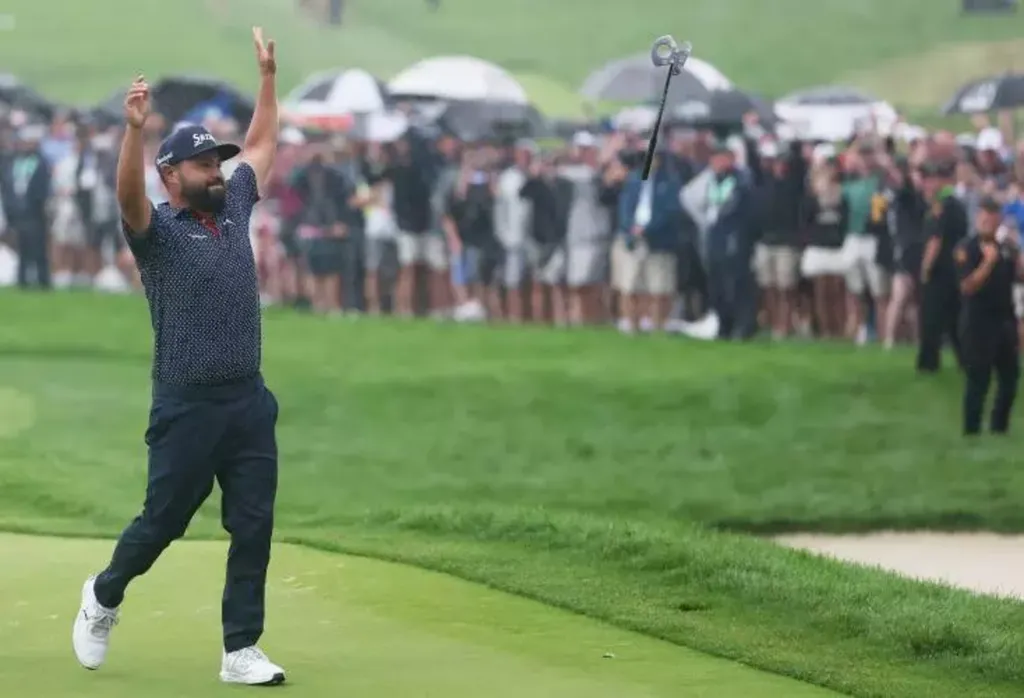 | J.J. Spaun après le putt qui lui a permis de remporter l'US Open 2025. |