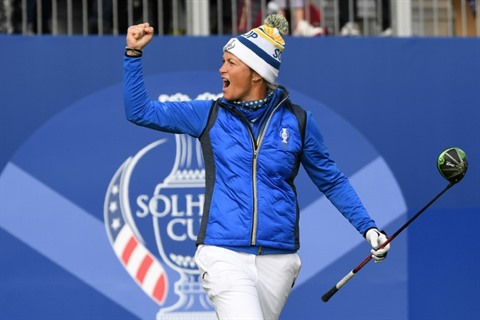 | La Suédoise Pettersen Seals a donné le point de la victoire à l'Europe dans la Solheim Cup de golf, le 15 septembre, à Gleneagles (Écosse). |