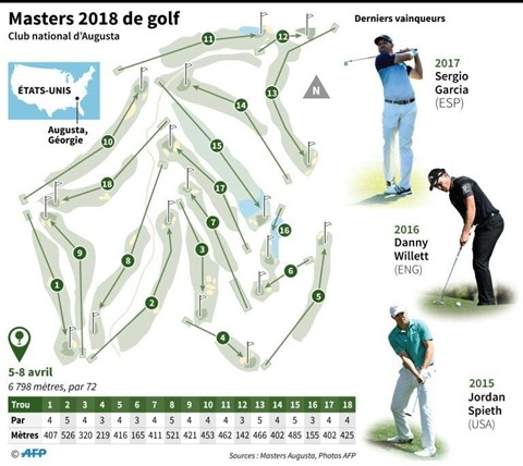 | Parcours du Masters 2018 de golf à Augusta et derniers vainqueurs. |