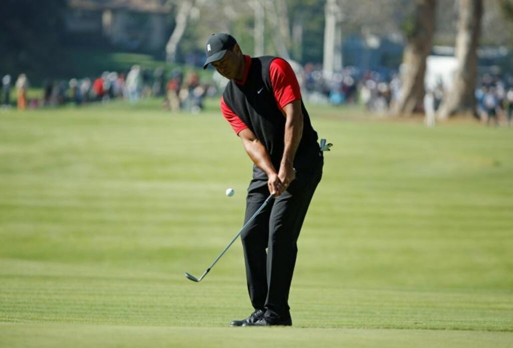 | L'Américain Tiger Woods frappe un coup lors du Genesis Invitational au Riviera Country Club à Pacific Palisades, en Californie, le 19 février. |