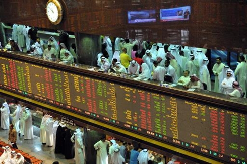 | Des boursiers suivent l'évolution des indices à la Bourse du Koweit, le 16 septembre 2013. |