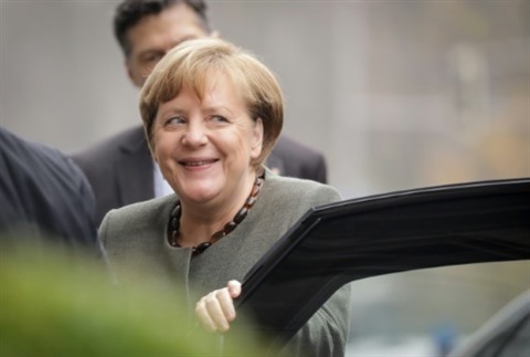 | Angela Merkel arrive à des pourparlers avec des membres d’une potentielle coalition pour former un nouveau gouvernement, à Berlin le 16 novembre |