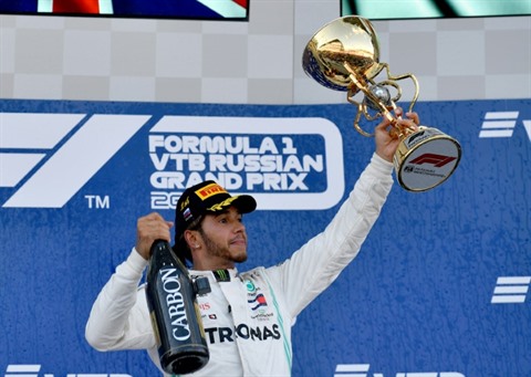 | Le Britannique Lewis Hamilton remporte le GP de F1 de Russie, le 29 septmbre. |