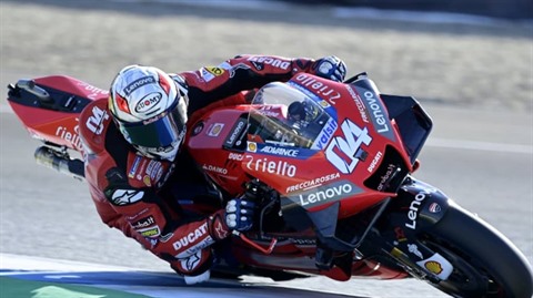 | L'Italien Andrea Dovizioso lors de la 3e séance d'essais libres du GP d'Espagne, à Jerez, le 25 juillet. |