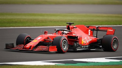 | L'Allemand Sebastian Vettel lors des qualifications du GP des 70 ans de la F1, à Silverstone, le 8 août. |