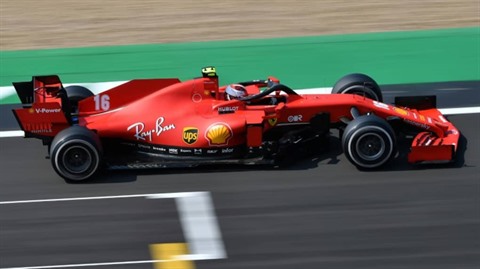 | Le Monégasque Charles Leclerc lors du GP des 70 ans de la F1, à Silverstone, le 9 août. |