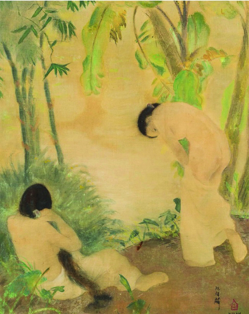 | L’œuvre "Les baigneuses" du peintre vietnamien Nguyên Tuong Lân. Photo : Million Vietnam/CVN |