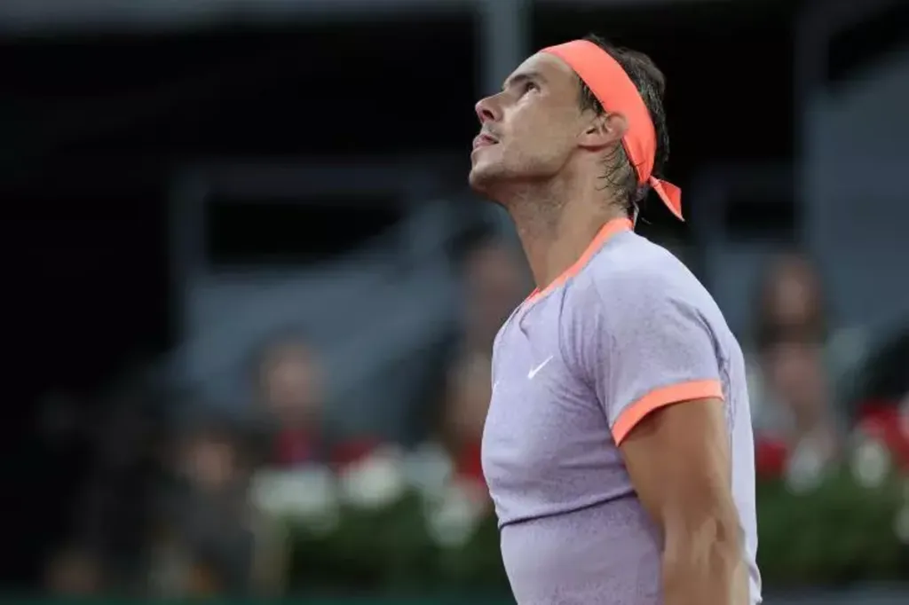 | Rafael Nadal après sa défaite face au Tchèque Jiri Lehecka en huitième de finale du tournoi ATP Masters 1000 de Madrid tard, dans la soirée du 30 avril. |