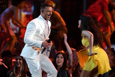 | Ricky Martin, sa moustache et Camila Cabello aux Grammys. |